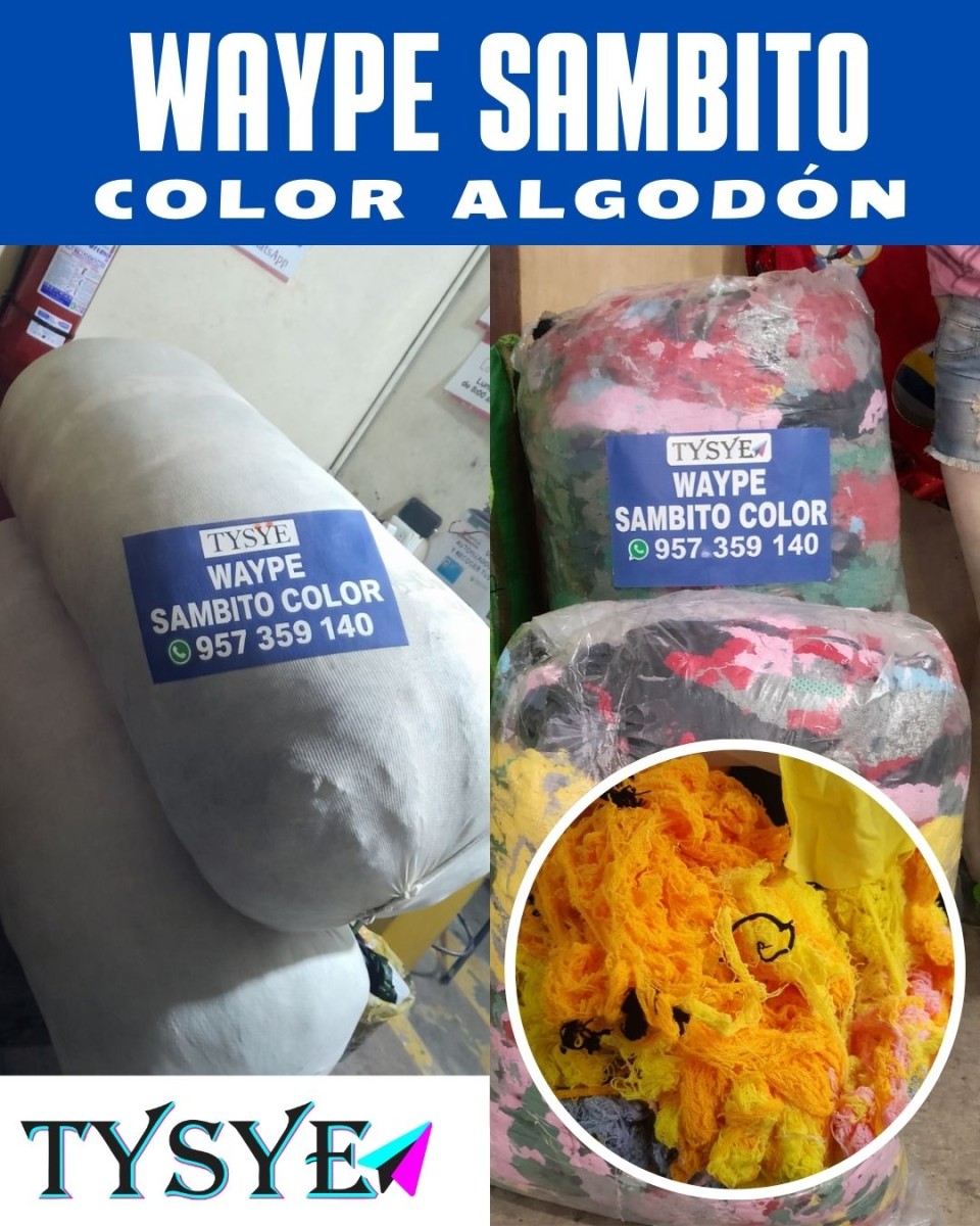 El waype sambito o jaladito color, es un producto elaborado artesanalmente de cuellos de polo camisero, 100 % algodón y multiuso en general. Exclusivo uso en mecanica de motores.?
